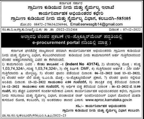 Water and Sanitation Department, Kalaburagiru invited tenders from qualified contractors for drinking
