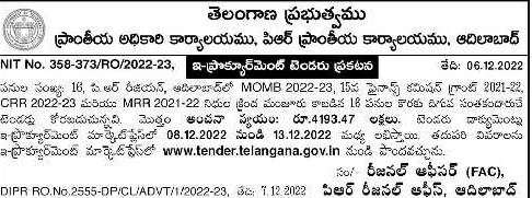 DIPR RO.No.2555-DP/CL/ADVT/I/2022-23, Dated: 1.12 2022 PR Regional Office, Adilabad