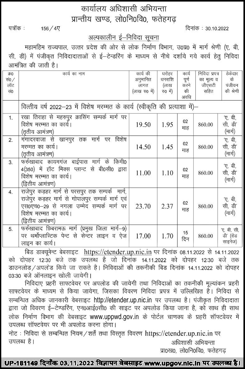 Tender for repair work on Rakha Tiraha to Mahrupur crossing link road