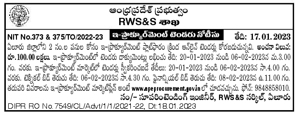 2 No. of Eluru District. Online tenders are invited under e-procurement platform for the works