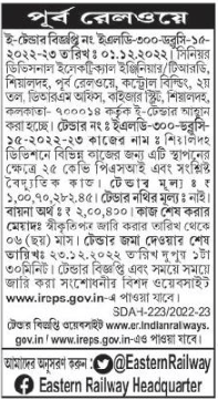 2022-23 Date : 01.12.2022. E-Tenders are invited by Senior Divisional Electrical Engineer/TRD, Sealdah, Eastern Railway, Control