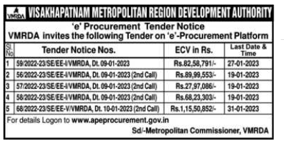 Tender for 568/2022-23/SE/EE-V/VMRDA, DI. 10-01-2023 (2nd Call) in VISAKHAPATNAM METROPOLITAN REGION DEVELOPMENT AUTHORITY
