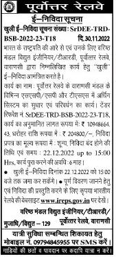 Eastern Railway, Varanasi invites “Open” e-tenders