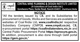 All the tenders issued by CIL and its Subsidiaries for procurement of Goods, Works and Services are available on websites of Coal India Ltd.