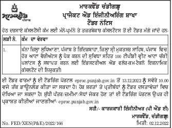 E-tender forms can be downloaded from e-tendering portal eproc.punjab.gov.in till