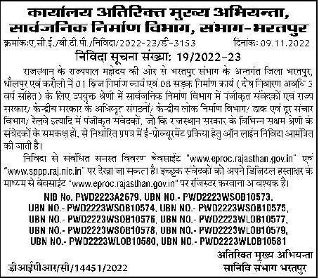 Bharatpur division, for 01 bridge construction work and 08 road construction work (including defect