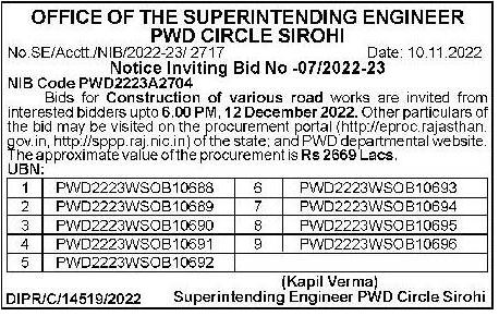interested bidders upto 6.00 PM, 12 December 2022. Other particulars of
