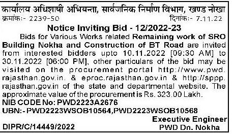 30.11.2022 [06:00 PM], other particulars of the bid may be