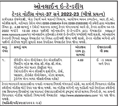 Building of G.S.C.S.C.L. Godown at Matar District Kheda Repairing and renovation in existing (providing and fixing flooring, doors, plaster, toilet renovation, water supply, drainage and other miscellaneous works)