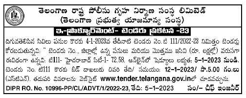 Civil works: “Tender No., Works in Districts and Total ECV (Rs. Lakhs) respectively as follows: T111- Hyderabad City-1 – 72.58