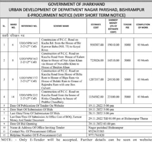 URBAN DEVELOPMENT OF DEPARTMENT NAGAR PARISHAD, BISHRAMPUR