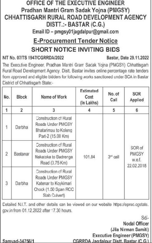 Email ID-pmgsy01jagdalpur@gmail.com