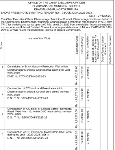 Dharmanagar Municipal Council area during the year