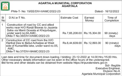 Construction of CC road from the H/O Haribal Das to Babul Acharjee at West side of Kumaritilla lake, under ward no.05, AMC. DNIe-T No:37/DIV-IIIAMC/2022-23