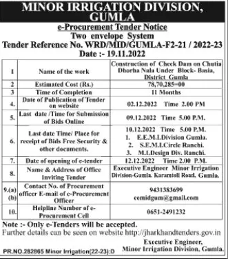Tender Reference No. WRD/MID/GUMLA-F2-21/2022-23