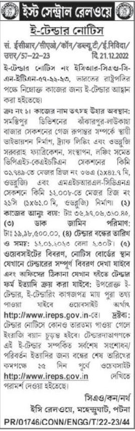 Construction of permanent diversion, track linking and utility supply including fabrication, installation, launching of gauge conversion of Jhanjharpur
