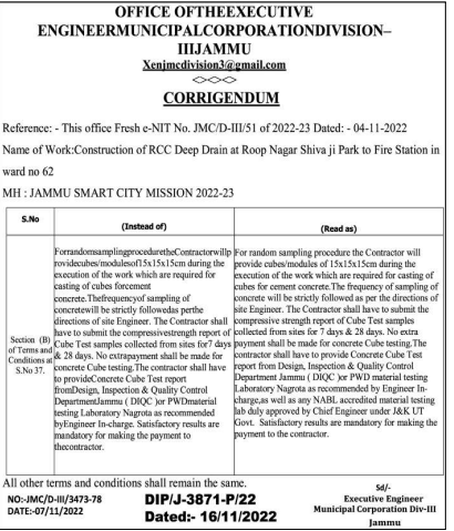 Construction of RCC Deep Drain at Roop Nagar Shivaji Park to Fire Station in ward no 62