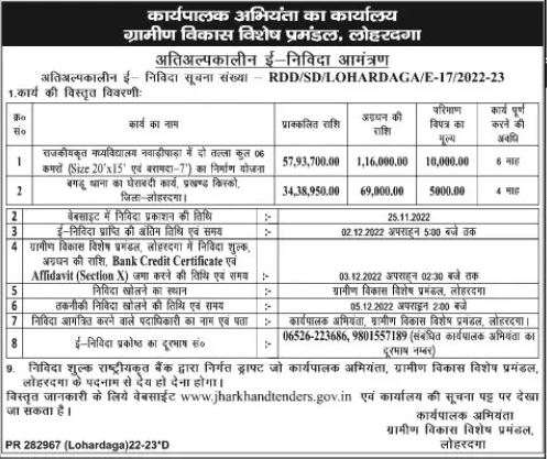Very short term e-tender notice number RDD/SD/LOHARDAGA/E-17/2022-23 1.