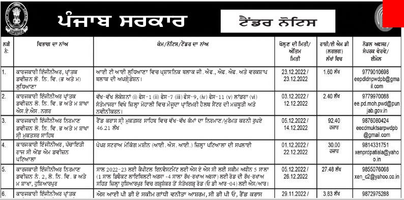 | Strengthening and Renovation of existing Primary Health Center in District Mohali at various