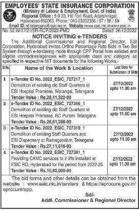 website: www.esic.nic.in/tenders & https://eprocure.gov.in/