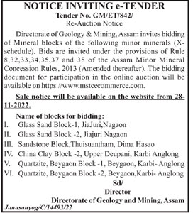 Directorate of Geology & Mining, Assam invites bidding