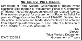 Directorate of Tribal Welfare, Government of Tripura invites