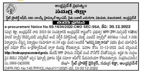 e-procurement for supply of uniform cloth under the “Jagananna Vidya Kanuka”scheme.