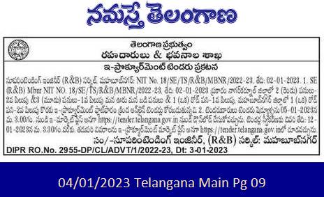 2 (Two) Works in Nagar Kurnool Districts – 12th Call &3 (Three) Works- 1st Call Mana Uru Mana Badi Works & 1( Online tenders are invited under e-procurement platform for a) Road Work-1st Call, 1 (one) Road Work-2nd Call in Mahbubnagar District.
