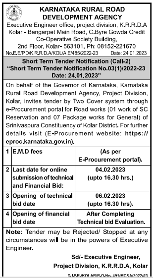 e-Procurement portal for Road works (01 work of SC Reservation and 07 Package works for General)