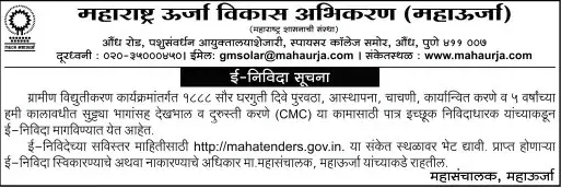 For detailed information about e-tendering visit the website http://mahatenders.gov.in. Received
