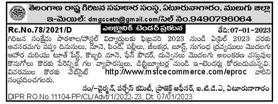 E-tenders are invited from reputed traders and distributors for purchase of essential pulses, oil, flour, pulses, cumin, boost, spices etc. food and cosmetic items like toothpaste, coconut oil, fawn powder, combs etc.