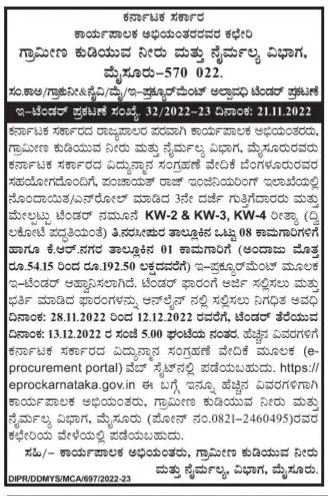 of Narseepur taluk and 01 works of KR Nagar taluk (estimated