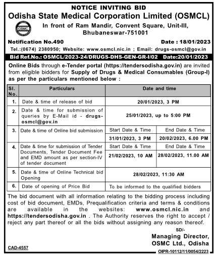 eligible bidders for Supply of Drugs & Medical Consumables (Group-l)