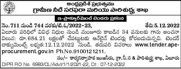 DIPR RO No. 6983/CL/Advt/1/1/2021-22, Dt: 07-12-2022
