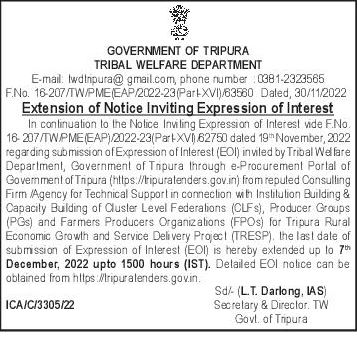 December, 2022 upto 1500 hours (IST). Detailed EOI notice can be