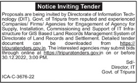 Govt. of Tripura from reputed and experienced Companies/ Firms/ Agencies for Engagement of Agency for Supply, Installation, Commissioning and Support of IT Infra- structure