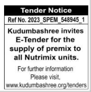 Kudumbashree invites E-Tender for the supply of premix to all Nutrimix units.