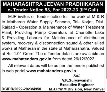 to Matheran Water Supply Scheme, Tal- Karjat, Dist.