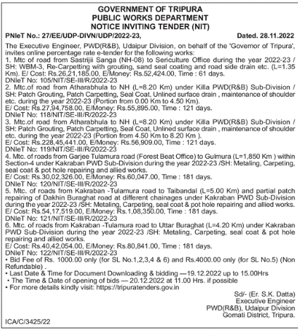 PNIET No.: 27/EE/UDP-DIVN/UDP/2022-23,
