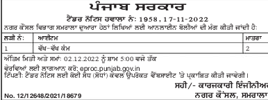 Note: Any amendment(s) to the tender notice will be published on the above website only.