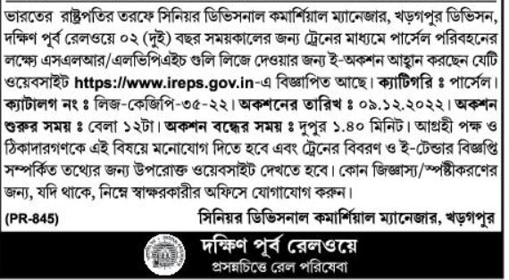 Division, South Eastern Railway invites e-auction for leasing of SLRs/LVPHs for