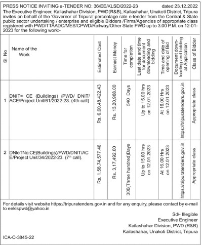 ONIT CE (Buildings) /PWD/ DNIT/ 1 ACE/Project Unit/61/2022-23. (4th call)