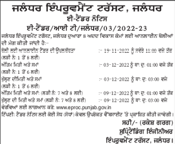 Online bids are invited by Jalandhar Improvement Trust, Jalandhar for 8