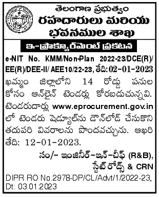 Online tenders are invited for 14 road works in Khammam district.