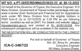 NIT NO: e-PT-30/EE/RD/MNU/D/2022-23, dt. 08-12-2