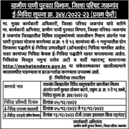 Jalgaon E-Tender Notice No. 344/2022-23 (First Round)