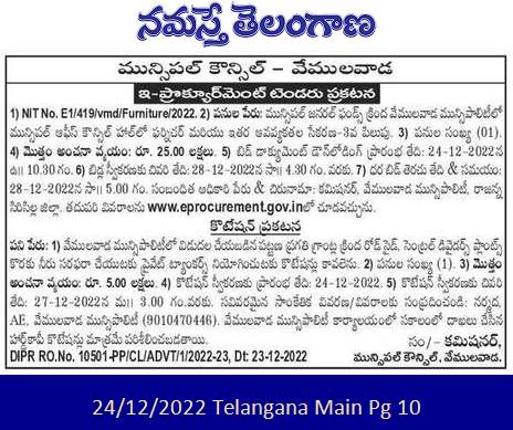 Procurement of furniture and other items in Municipal Office Council Hall in Vemulawada Municipality under Municipal General Funds-3rd Call.
