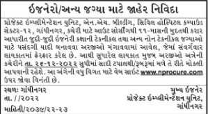 Gandhinagar, Applications are invited for shortlisting various engineering