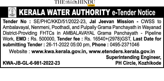 Jal Jeevan Mission CWSS to Ambalavayal, Nenmeni, Poothadi, and Pulpally Grama Panchayath in Wayanad District-Providing FHTCs in AMBALAVAYAL Grama Panchayath – Pipeline Work