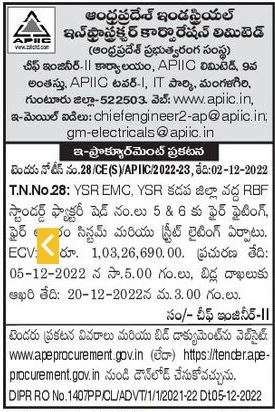 Tender Notice No.28/CE (S) APIIC/2022-23, Dated: 02-12-2022